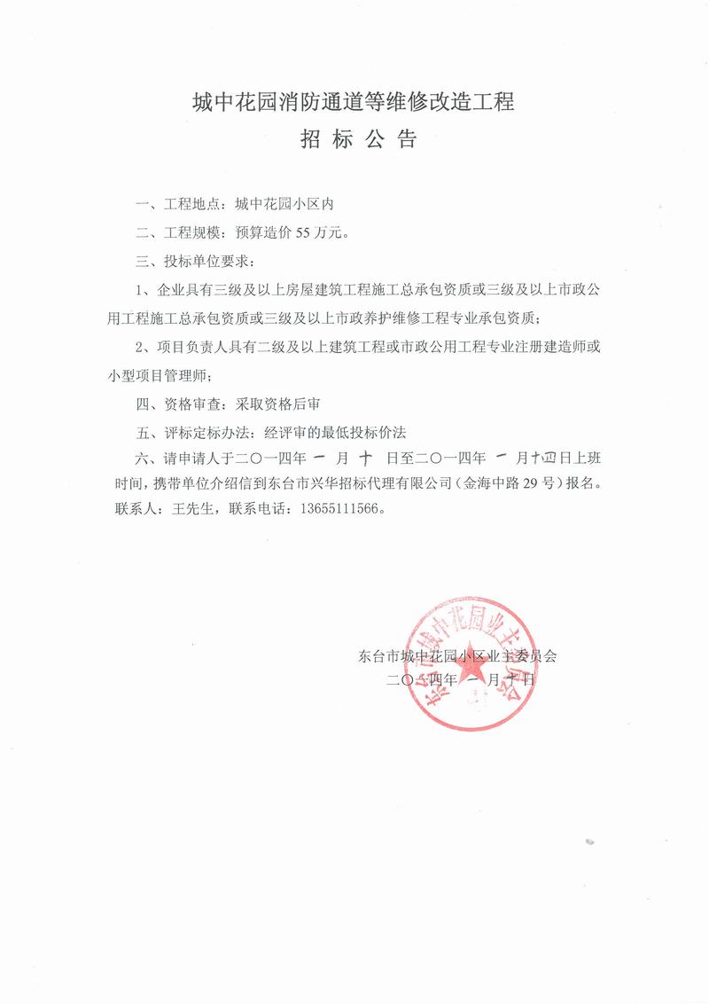 城中花园消防通道等维修改造工程