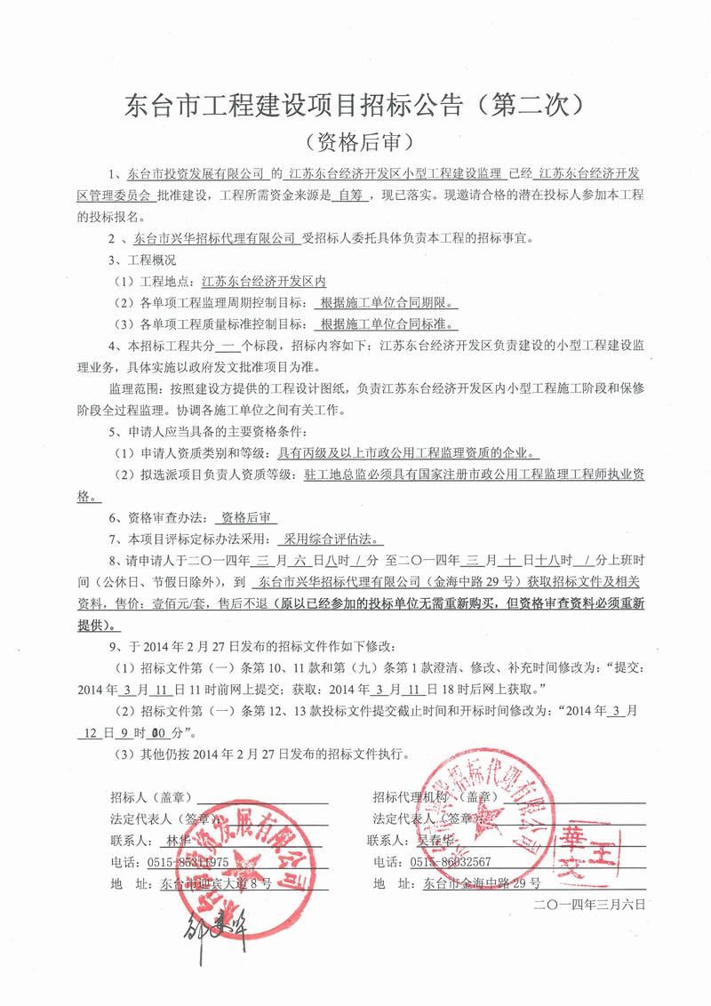 文章来源:东台市兴华招标代理有限公司 添加时间:2014/3/6 10:39:09 点击率:2555