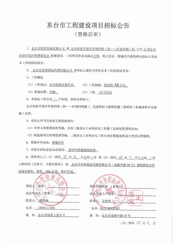 文章来源:东台市兴华招标代理有限公司 添加时间:2014/4/6 14:14:02 点击率:2674