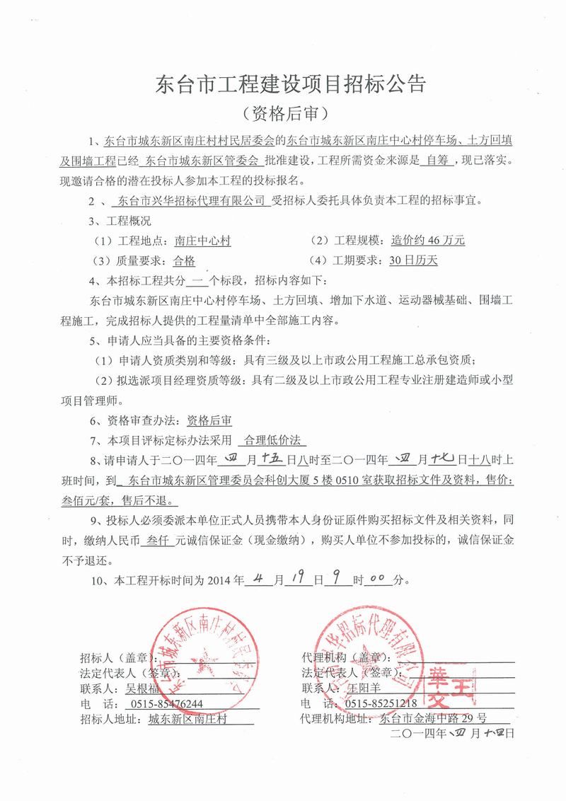 文章来源:东台市兴华招标代理有限公司 添加时间:2014/4/14 19:00:58 点击率:2621