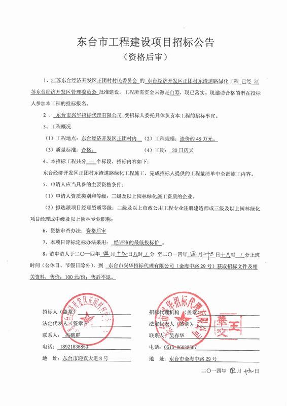 文章来源:东台市兴华招标代理有限公司 添加时间:2014/4/19 17:17:13 点击率:2599
