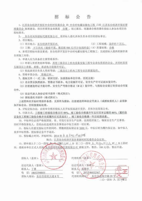文章来源:东台市兴华招标代理有限公司 添加时间:2014/6/24 17:03:14 点击率:3448
