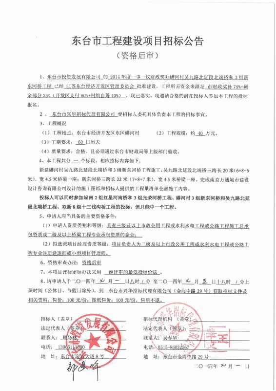 文章来源:东台市兴华招标代理有限公司 添加时间:2014/7/1 17:07:23 点击率:3692