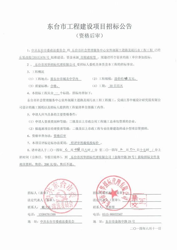 文章来源:东台市兴华招标代理有限公司 添加时间:2014/7/14 8:06:34 点击率:3718