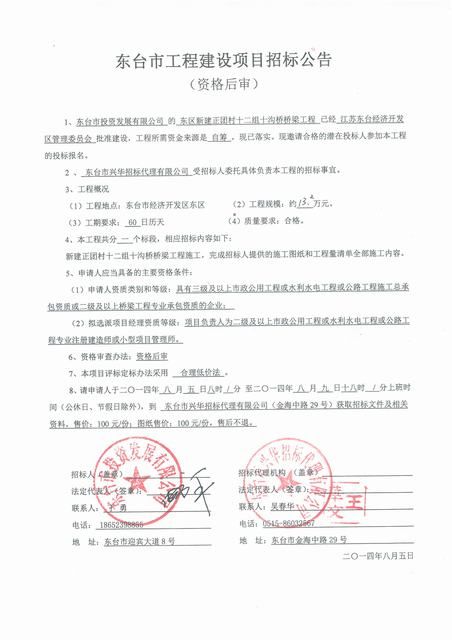 文章来源:东台市兴华招标代理有限公司 添加时间:2014/8/5 17:13:12 点击率:3333