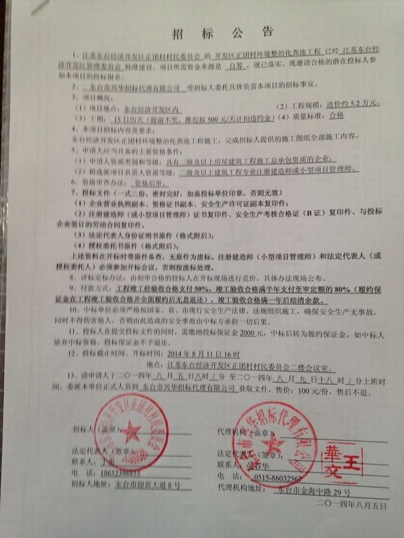 文章来源:东台市兴华招标代理有限公司 添加时间:2014/8/5 15:46:42 点击率:3478