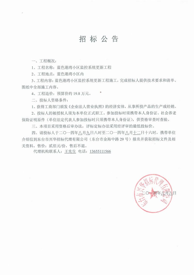 文章来源:东台市兴华招标代理有限公司 添加时间:2014/8/8 15:47:47 点击率:3475
