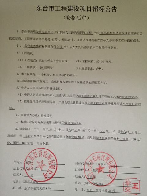 文章来源:东台市兴华招标代理有限公司 添加时间:2014/8/12 8:29:12 点击率:3887