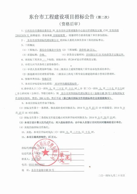 文章来源:东台市兴华招标代理有限公司 添加时间:2014/9/25 18:16:52 点击率:3532