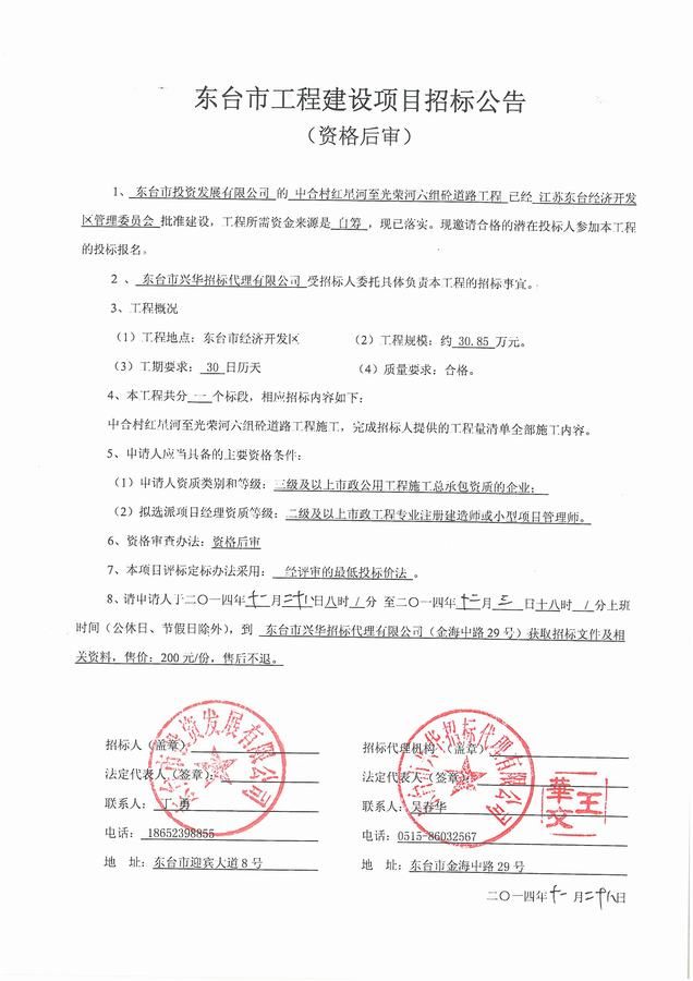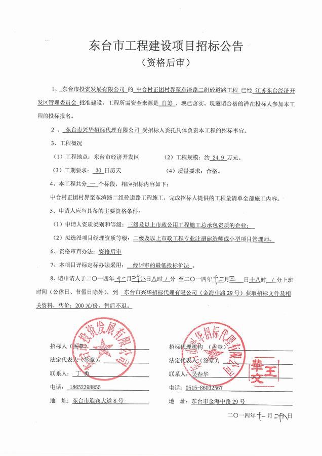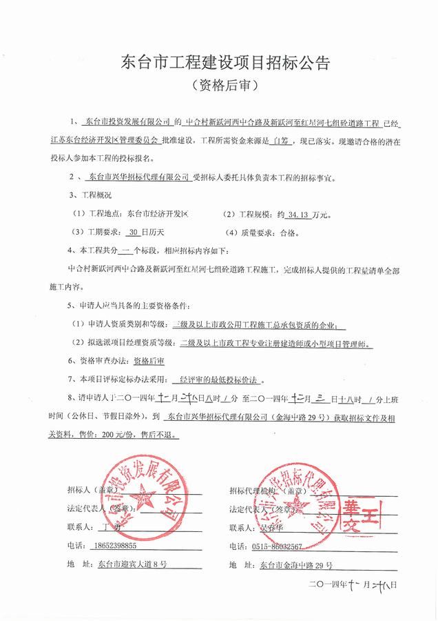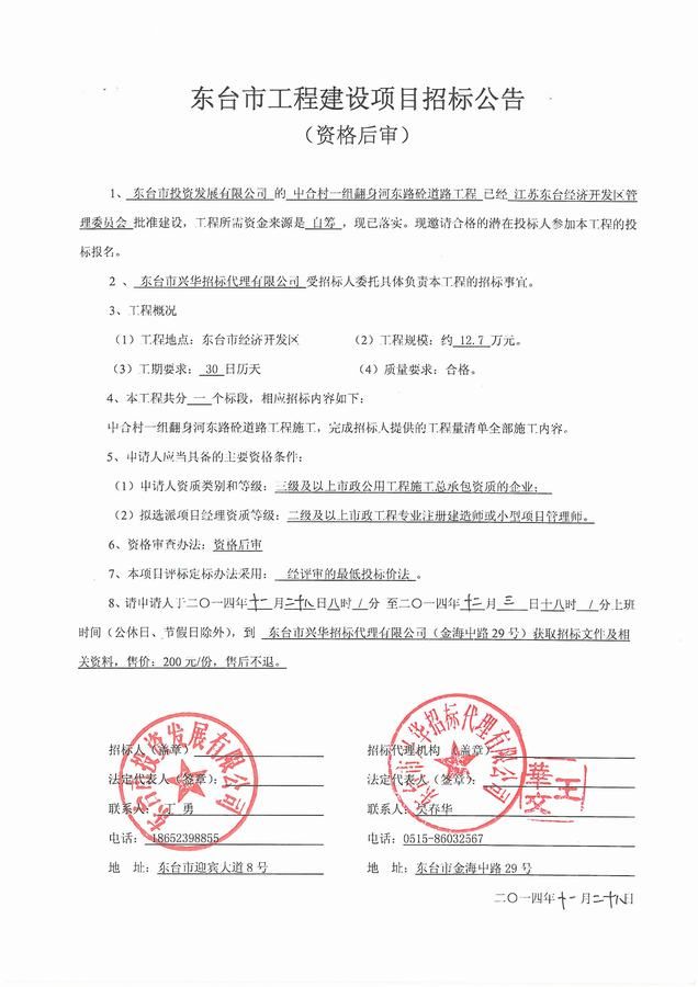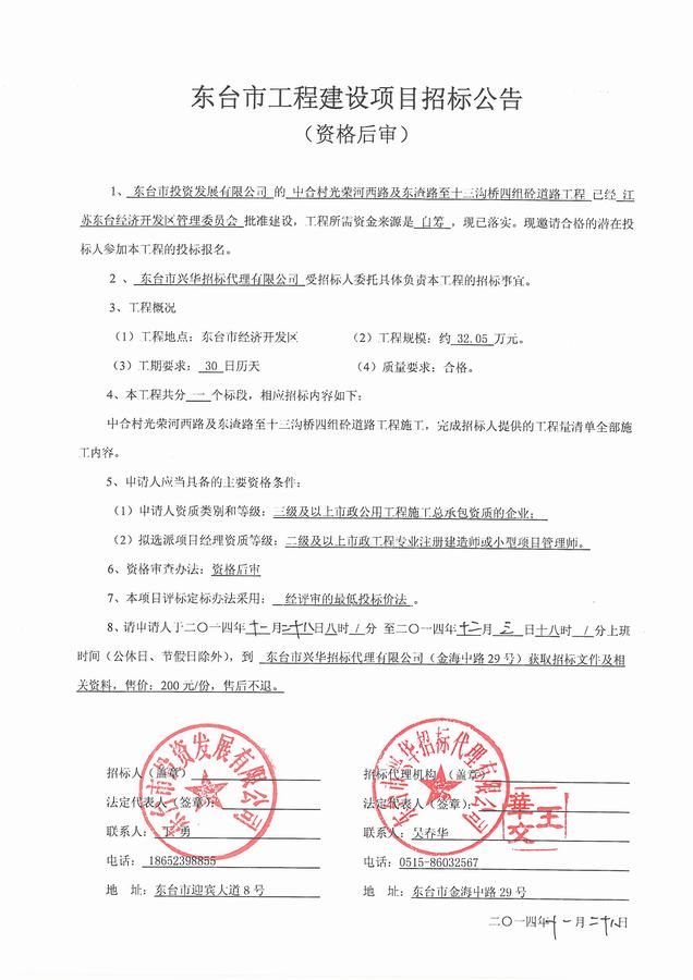 文章来源:东台市兴华招标代理有限公司 添加时间:2014/11/28 11:40:34 点击率:3275