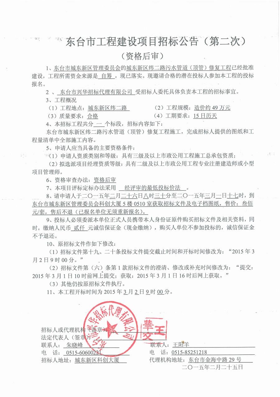 文章来源:东台市兴华招标代理有限公司 添加时间:2015/2/25 18:11:02 点击率:2762