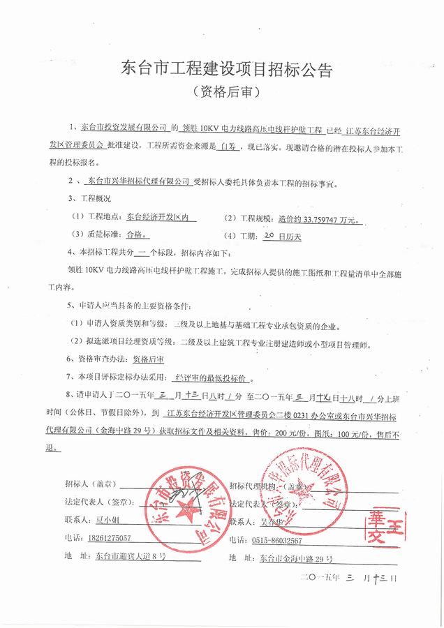 文章来源:东台市兴华招标代理有限公司 添加时间:2015/3/13 15:36:35 点击率:2601
