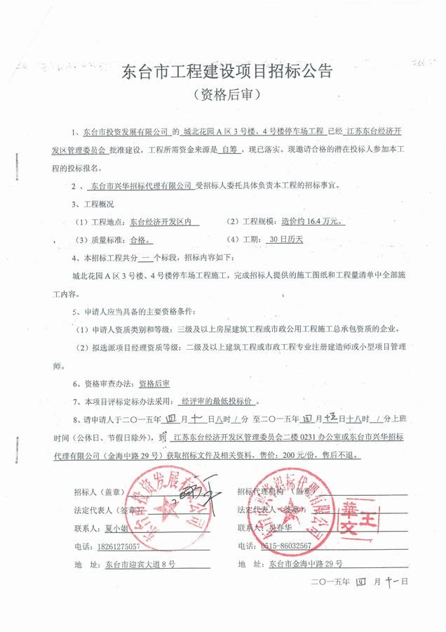 文章来源:东台市兴华招标代理有限公司 添加时间:2015/4/10 17:14:12 点击率:2942