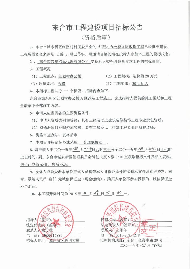 文章来源:东台市兴华招标代理有限公司 添加时间:2015/4/24 12:07:08 点击率:2394