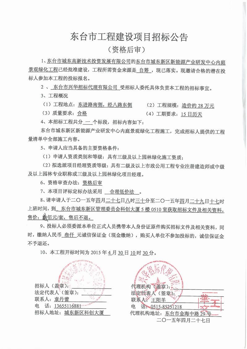 文章来源:东台市兴华招标代理有限公司 添加时间:2015/4/27 12:13:07 点击率:2492