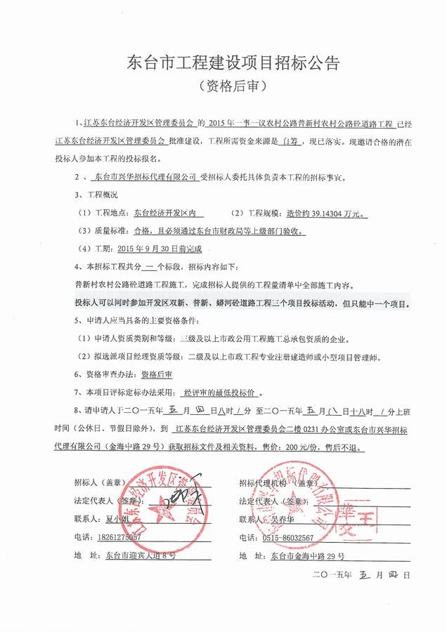 文章来源:东台市兴华招标代理有限公司 添加时间:2015/5/4 9:09:28 点击率:2776