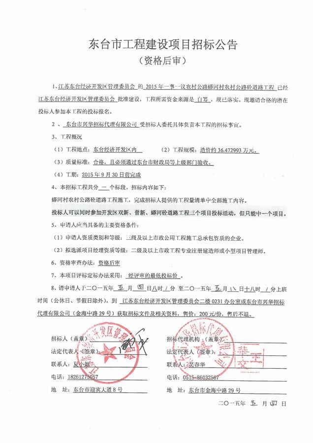 文章来源:东台市兴华招标代理有限公司 添加时间:2015/5/4 9:10:09 点击率:2517