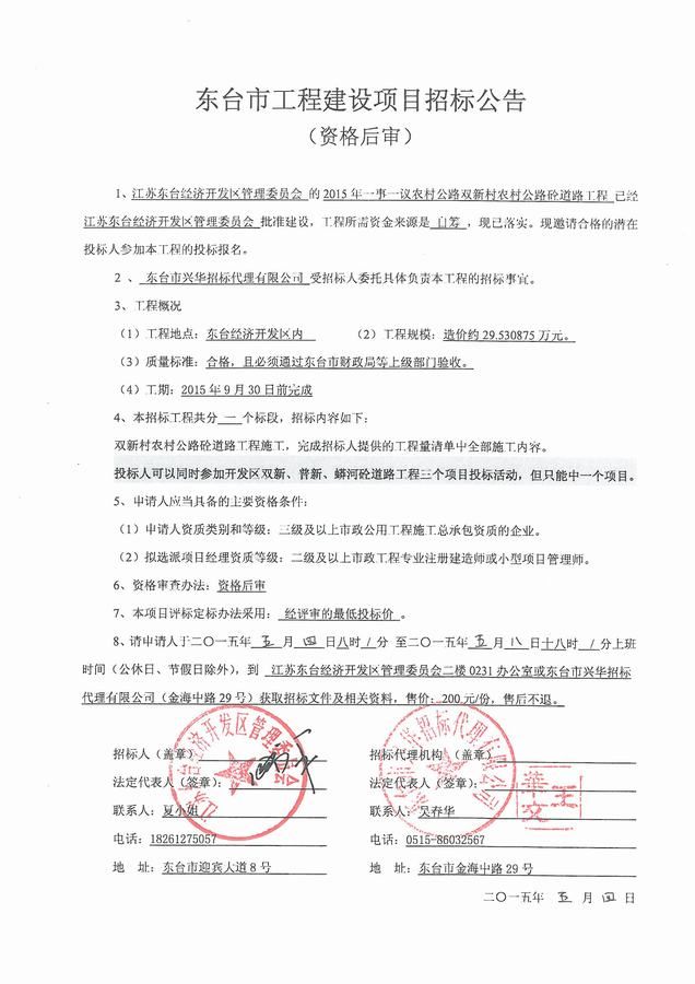 文章来源:东台市兴华招标代理有限公司 添加时间:2015/5/4 9:10:24 点击率:2573
