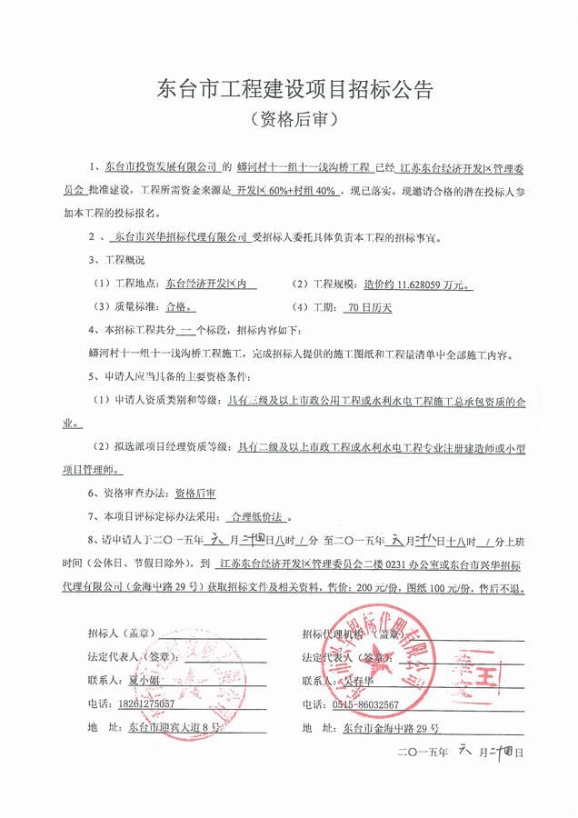 文章来源:东台市兴华招标代理有限公司 添加时间:2015/6/24 14:01:19 点击率:2642