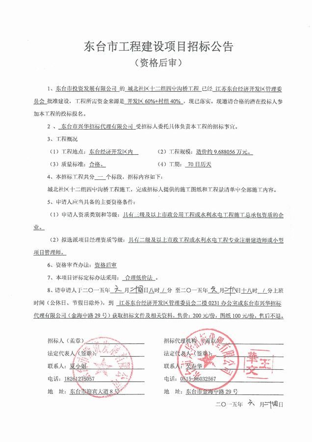 文章来源:东台市兴华招标代理有限公司 添加时间:2015/6/24 14:03:33 点击率:2677