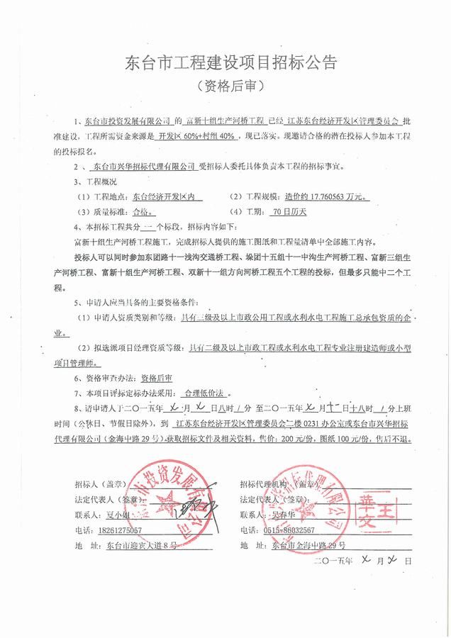 文章来源:东台市兴华招标代理有限公司 添加时间:2015/7/7 15:40:56 点击率:2468