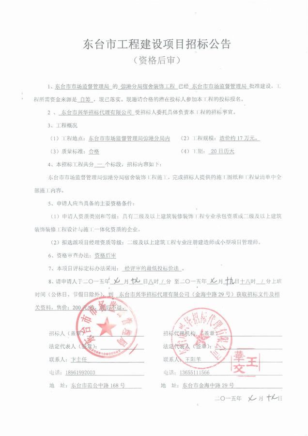 文章来源:东台市兴华招标代理有限公司 添加时间:2015/7/17 10:48:31 点击率:2659
