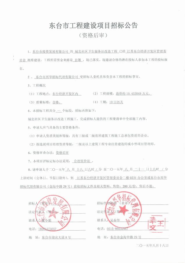 文章来源:东台市兴华招标代理有限公司 添加时间:2015/8/18 15:59:04 点击率:2726