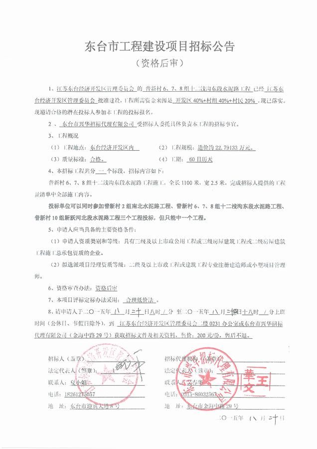 文章来源:东台市兴华招标代理有限公司 添加时间:2015/8/20 9:55:28 点击率:2595