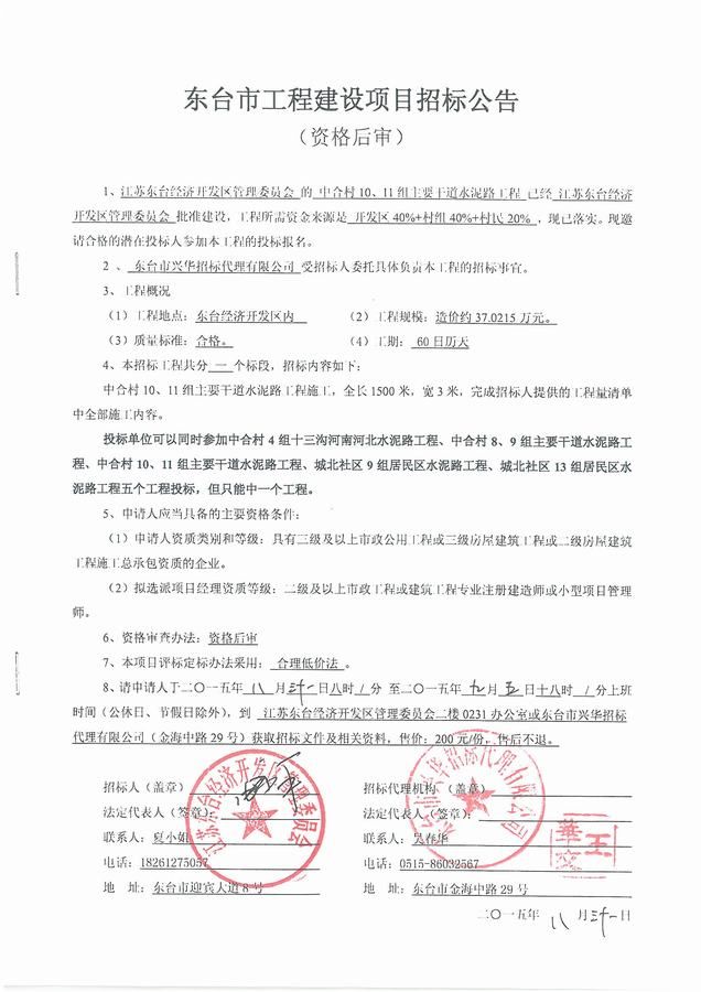 文章来源:东台市兴华招标代理有限公司 添加时间:2015/8/31 10:21:03 点击率:2581
