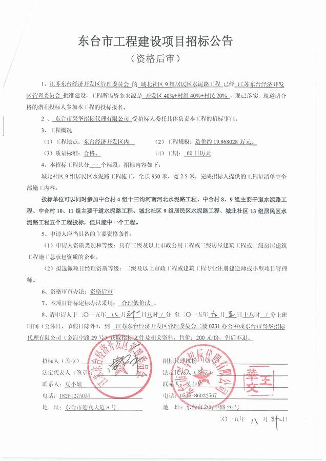 文章来源:东台市兴华招标代理有限公司 添加时间:2015/8/31 10:21:59 点击率:2601