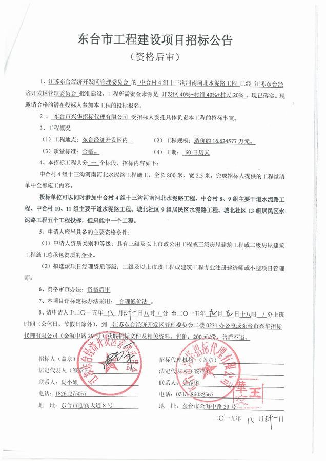文章来源:东台市兴华招标代理有限公司 添加时间:2015/8/31 10:22:24 点击率:2652