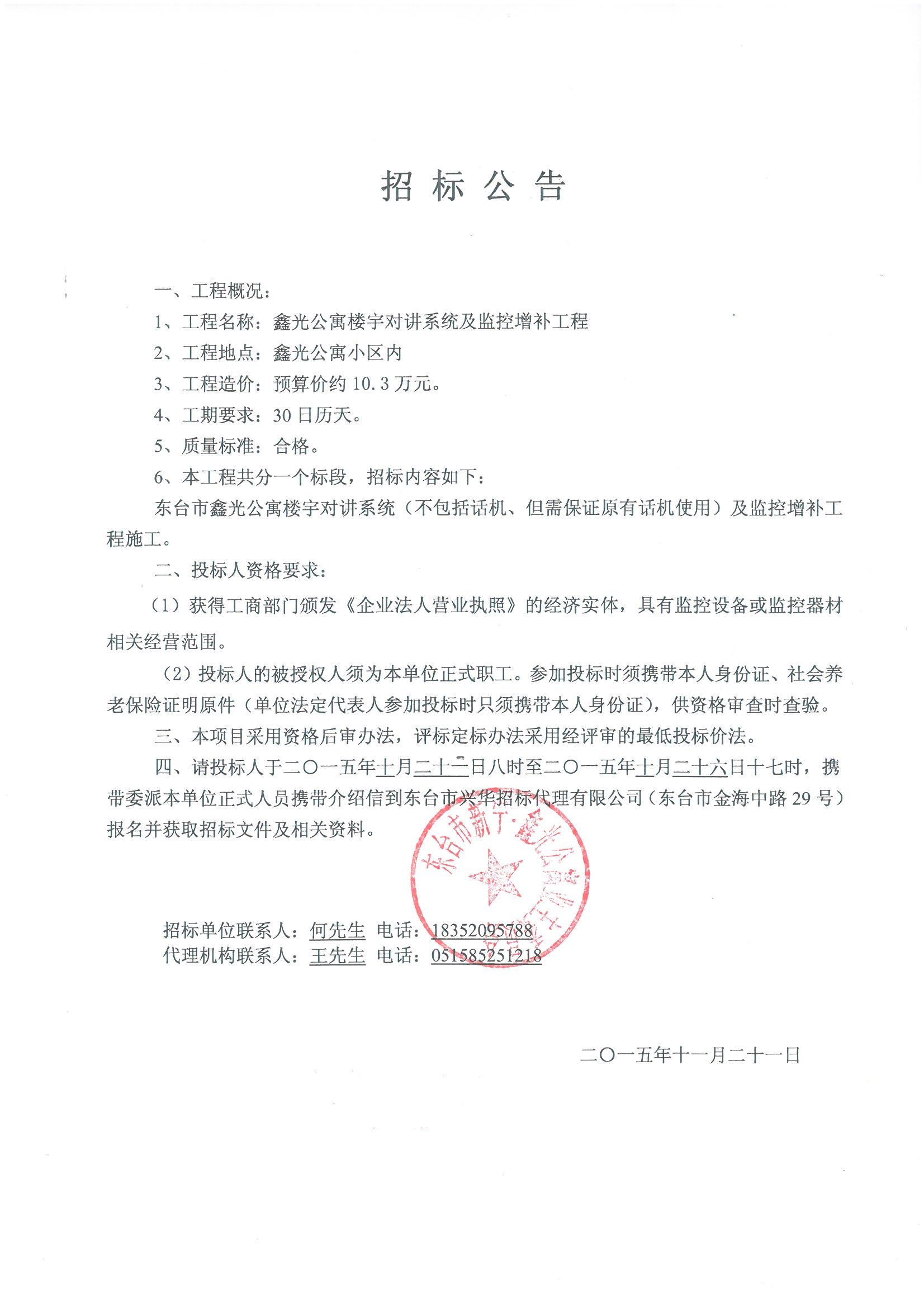文章来源:东台市兴华招标代理有限公司 添加时间:2015/10/21 9:10:19 点击率:2052