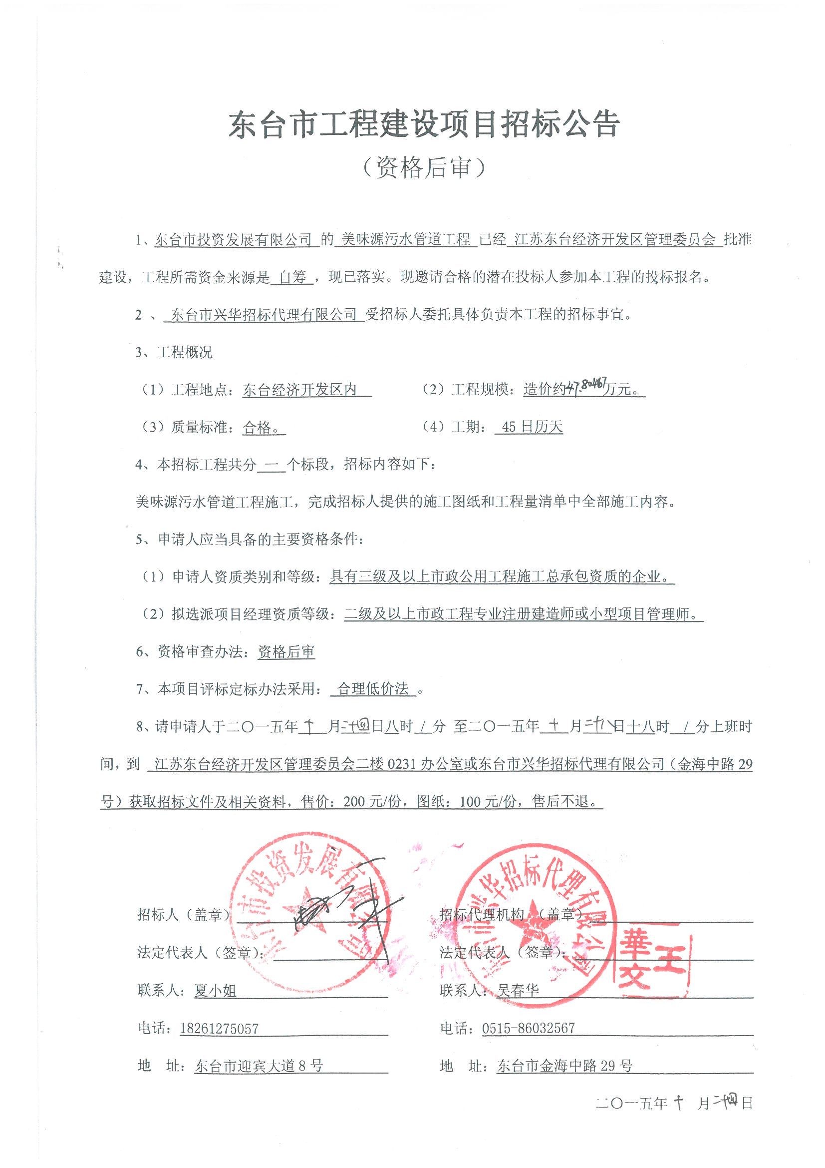 文章来源:东台市兴华招标代理有限公司 添加时间:2015/10/24 9:32:50 点击率:2036