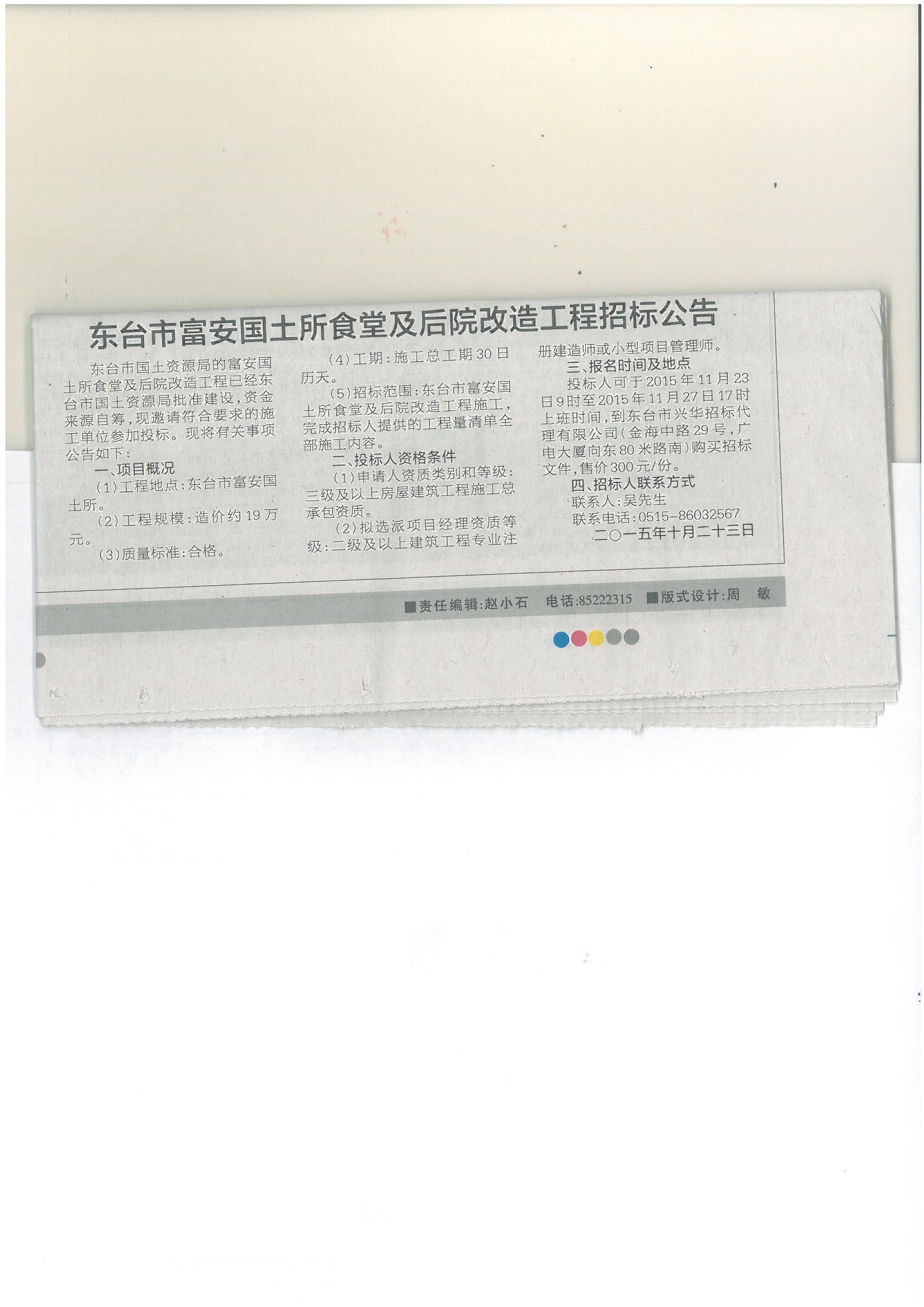 文章来源:东台市兴华招标代理有限公司 添加时间:2015/11/23 16:57:50 点击率:2174