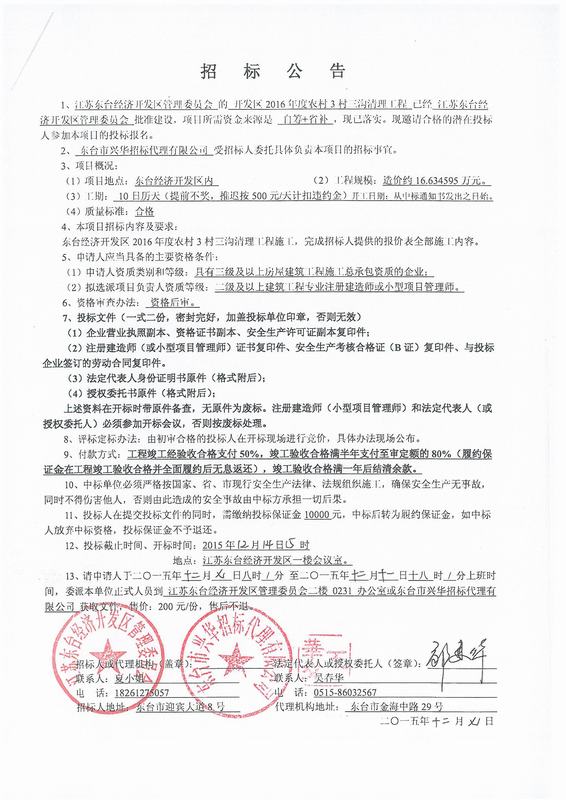 文章来源:东台市兴华招标代理有限公司 添加时间:2015/12/7 18:19:04 点击率:2161