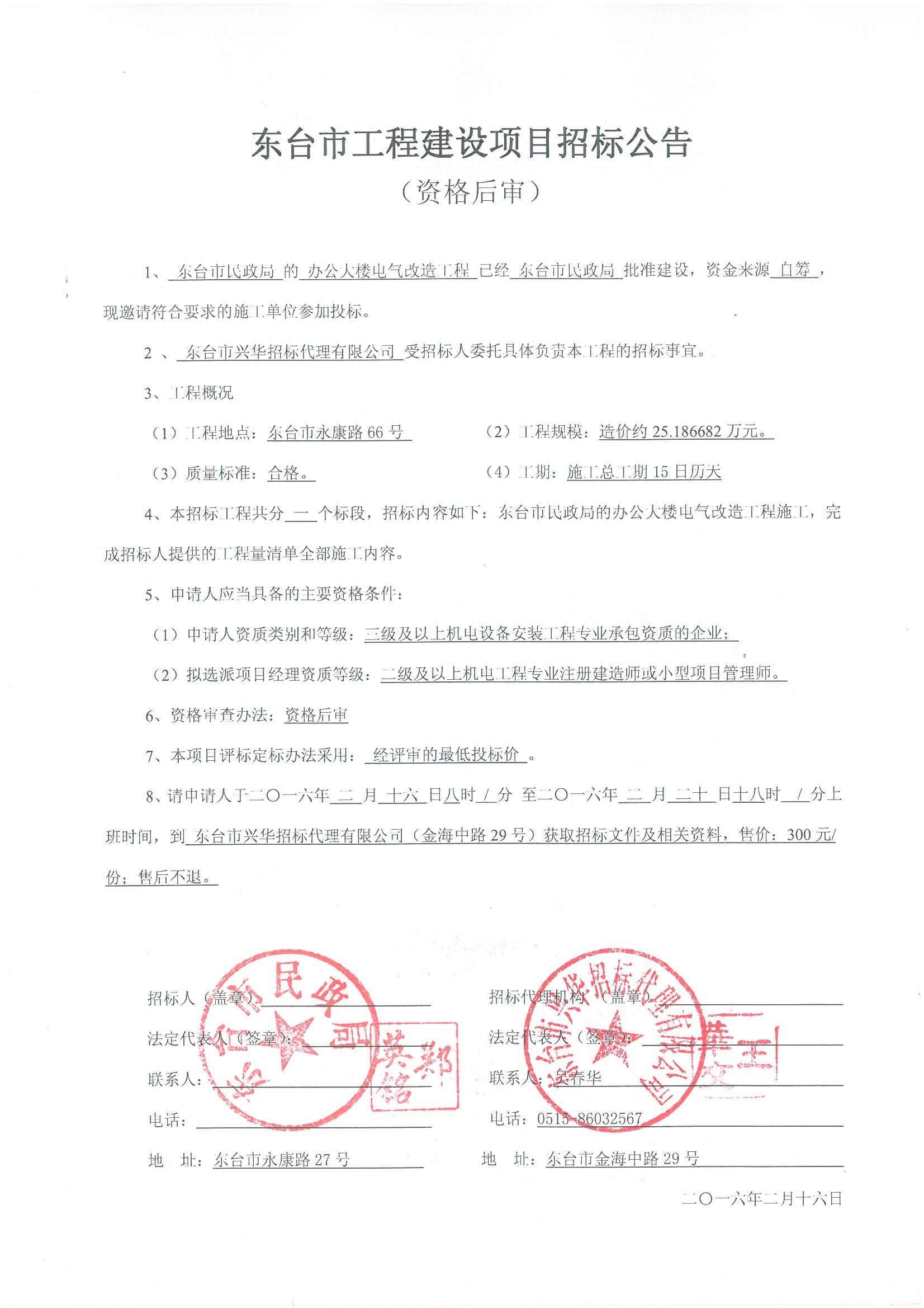 文章来源:东台市兴华招标代理有限公司 添加时间:2016/2/16 9:33:08 点击率:1865