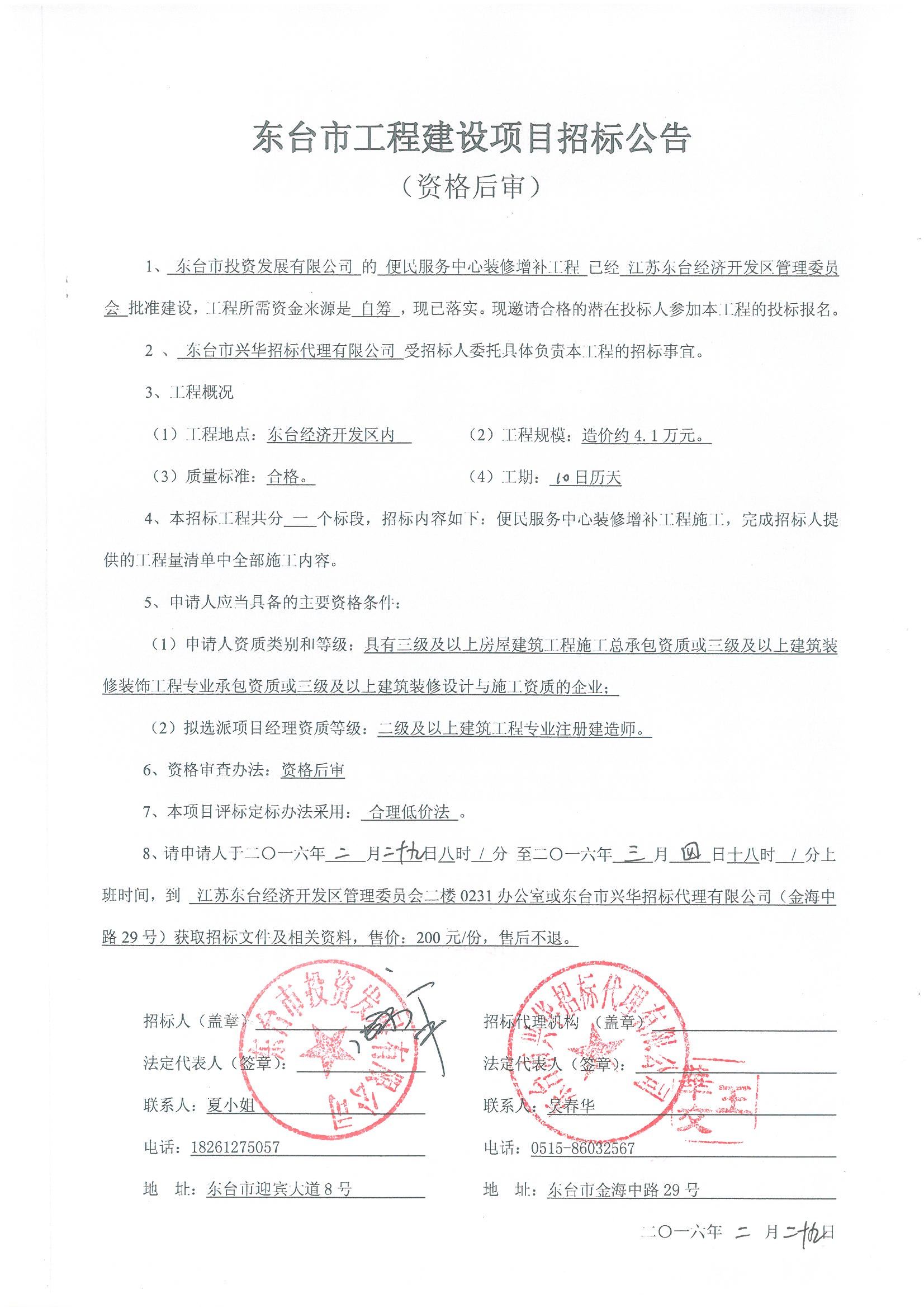 文章来源:东台市兴华招标代理有限公司 添加时间:2016/2/29 11:26:53 点击率:2223