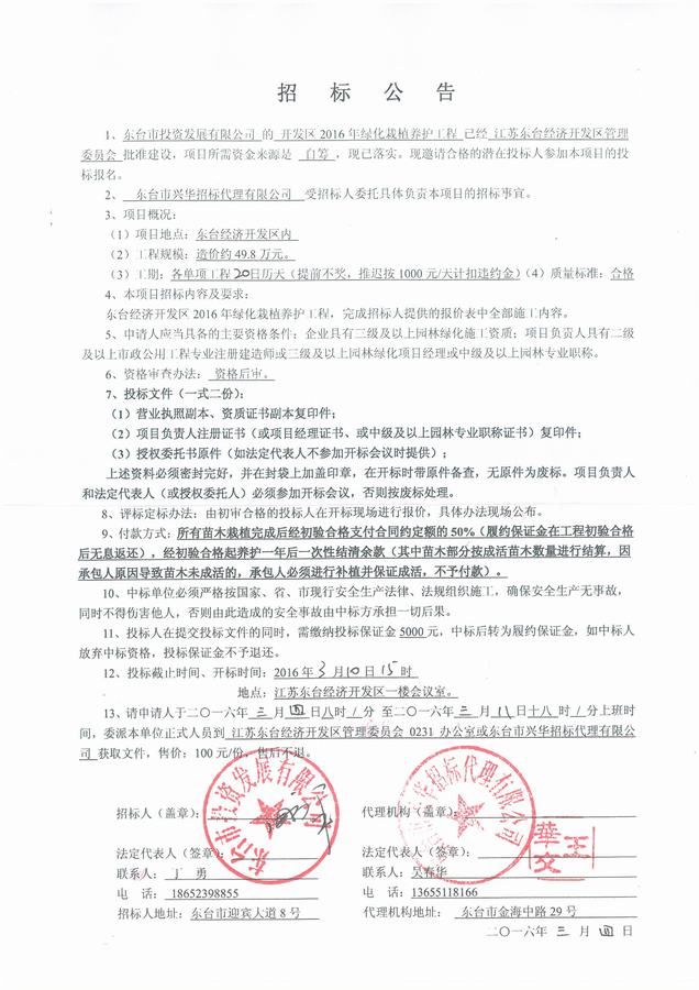 文章来源:东台市兴华招标代理有限公司 添加时间:2016/3/4 17:00:33 点击率:2167