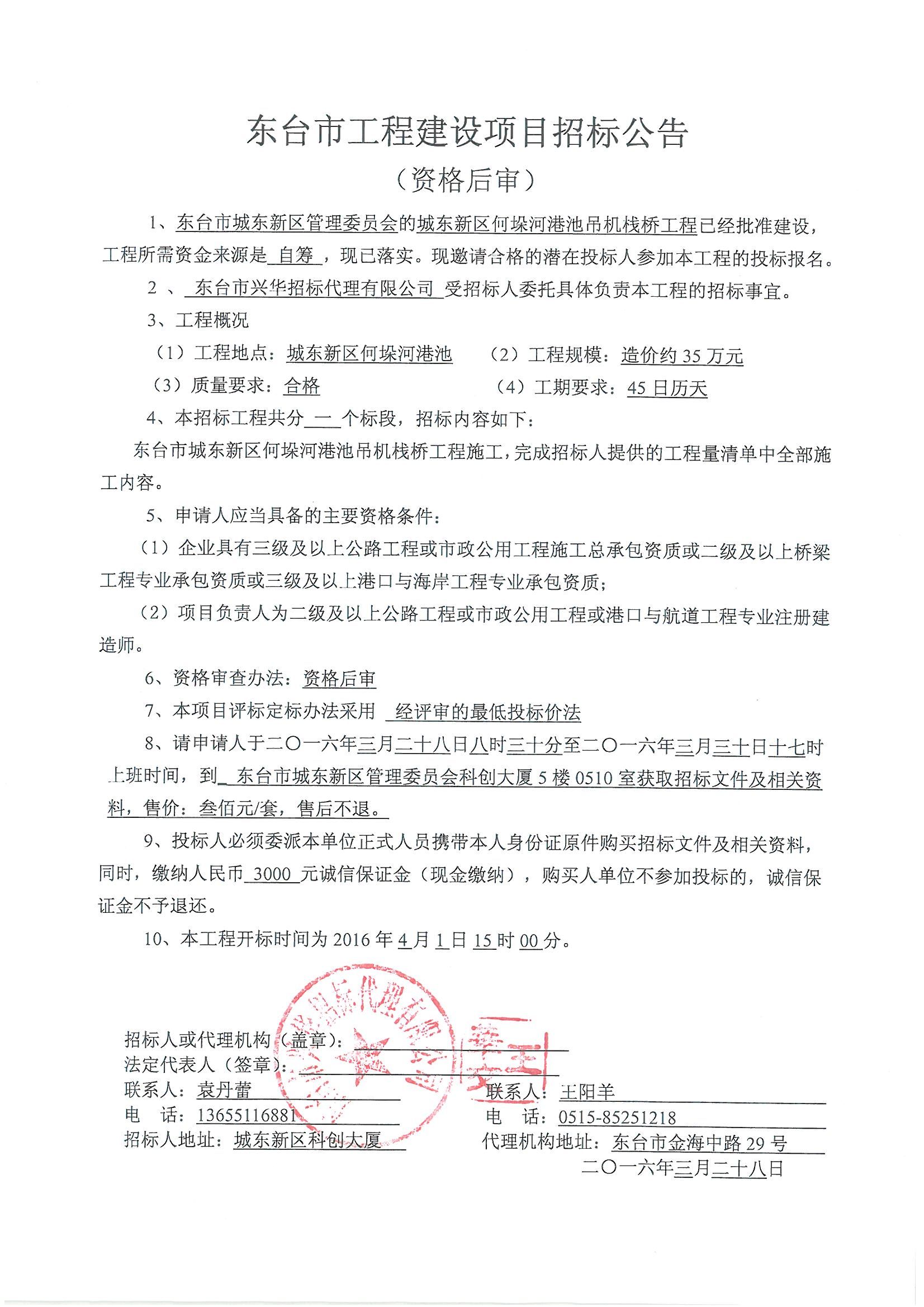 文章来源:东台市兴华招标代理有限公司 添加时间:2016/3/26 16:52:17 点击率:2048