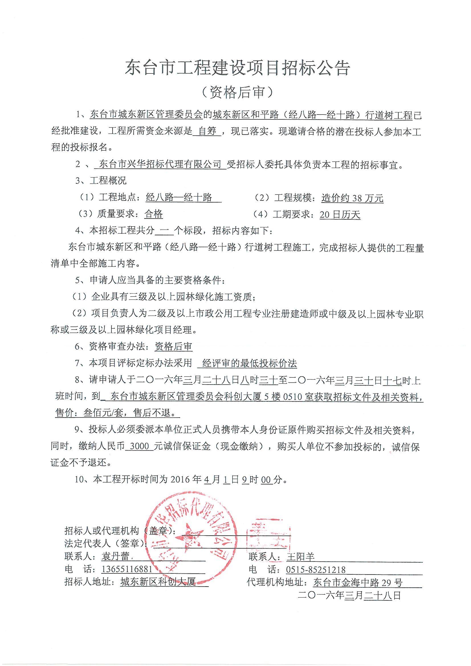 文章来源:东台市兴华招标代理有限公司 添加时间:2016/3/26 16:52:49 点击率:1966