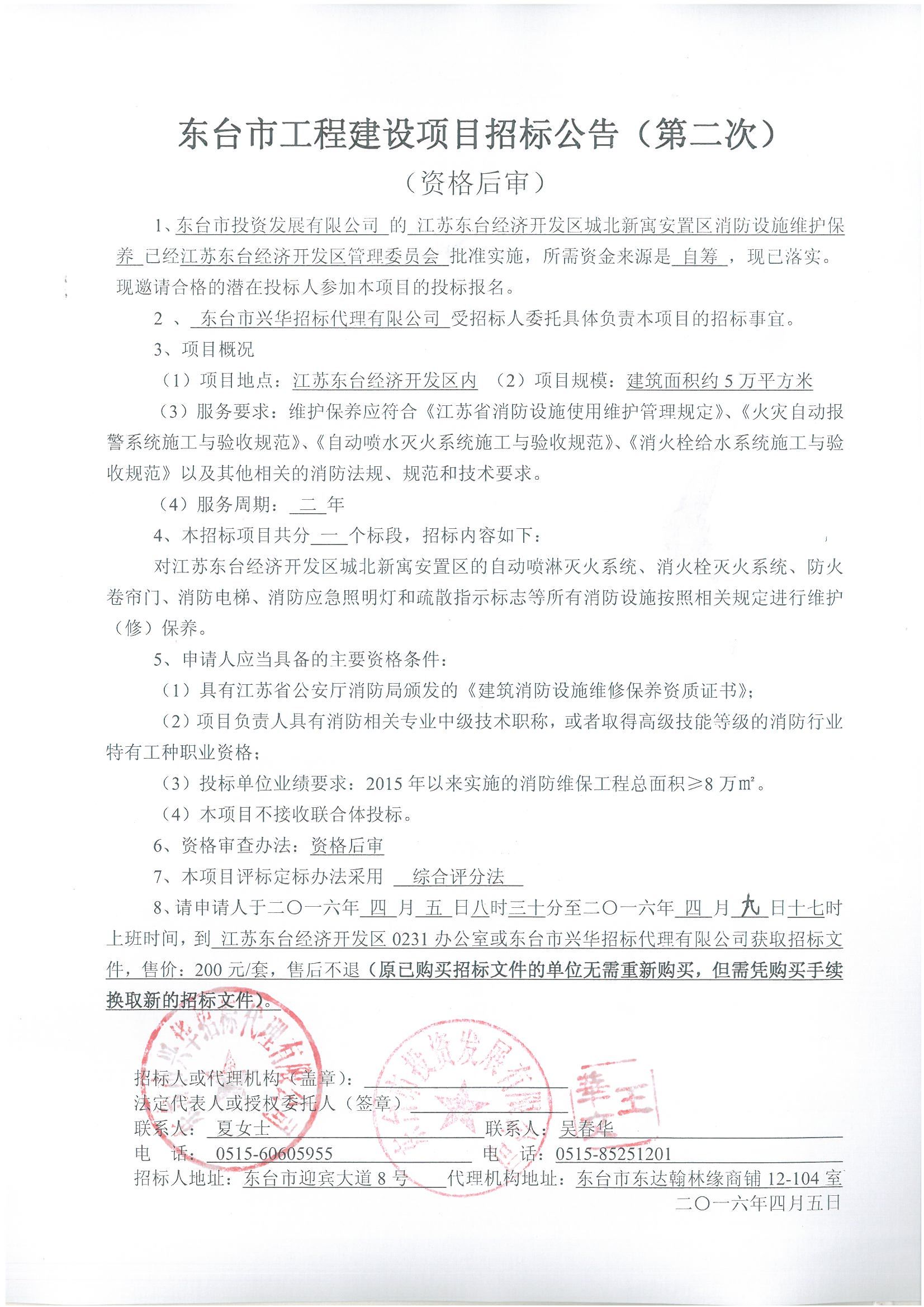 江苏东台经济开发区城北新寓安置区消防设施维护保养(第二次)