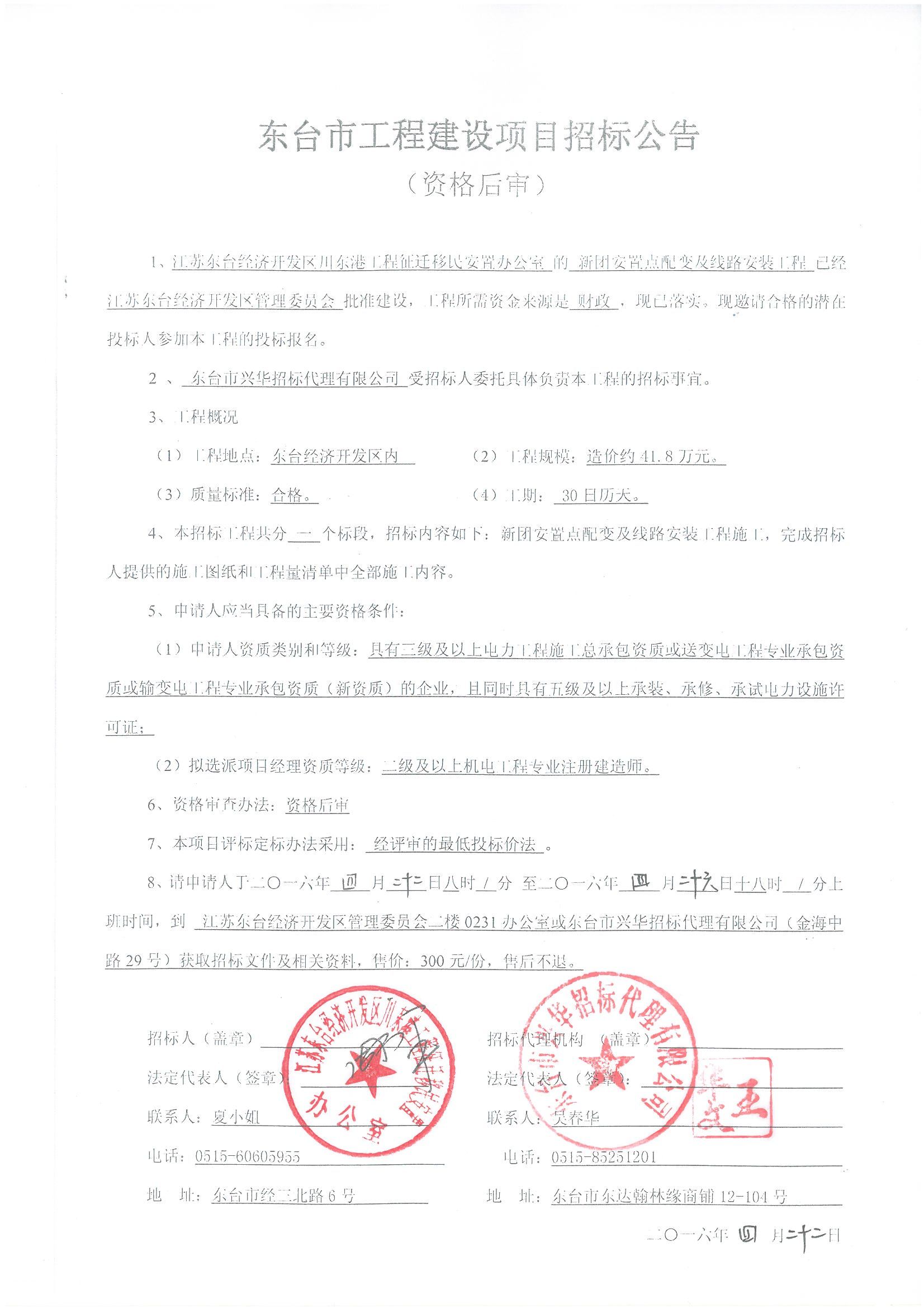 文章来源:东台市兴华招标代理有限公司 添加时间:2016/4/22 14:28:00 点击率:2166