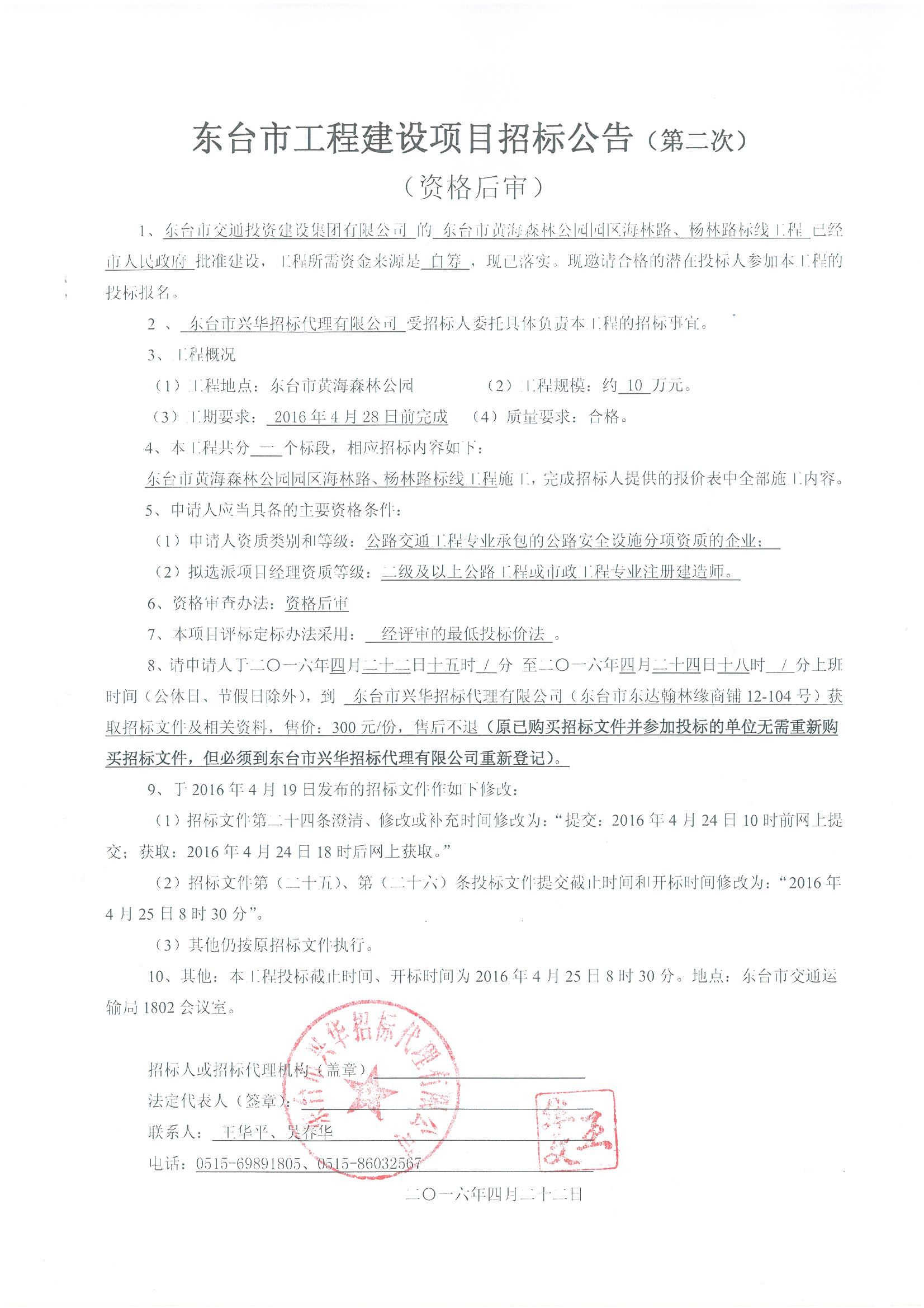 文章来源:东台市兴华招标代理有限公司 添加时间:2016/4/22 17:10:59 点击率:1745