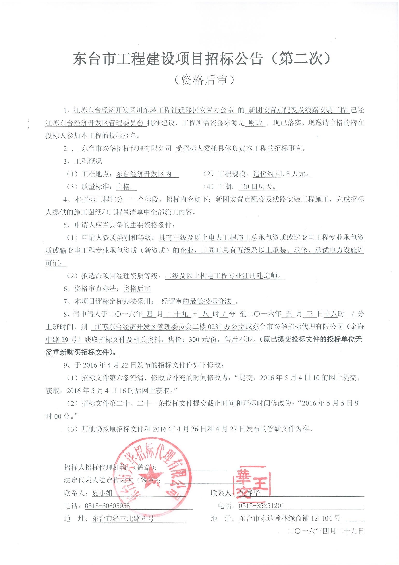 文章来源:东台市兴华招标代理有限公司 添加时间:2016/4/29 10:00:51 点击率:1864
