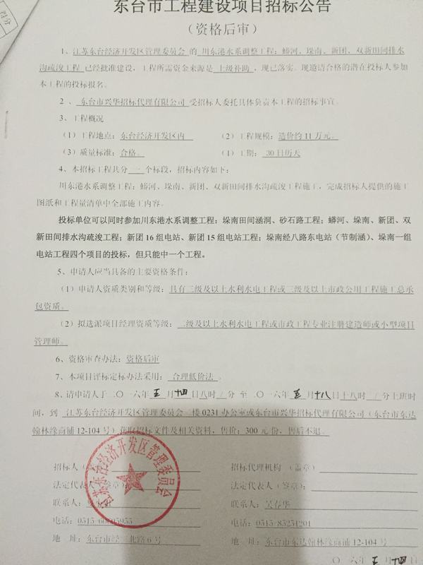 文章来源:东台市兴华招标代理有限公司 添加时间:2016/5/14 18:10:15 点击率:1984