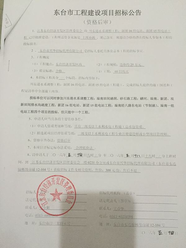 文章来源:东台市兴华招标代理有限公司 添加时间:2016/5/14 18:11:08 点击率:1921