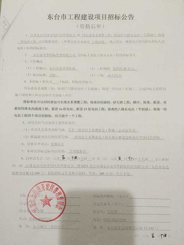 文章来源:东台市兴华招标代理有限公司 添加时间:2016/5/14 18:11:45 点击率:1922
