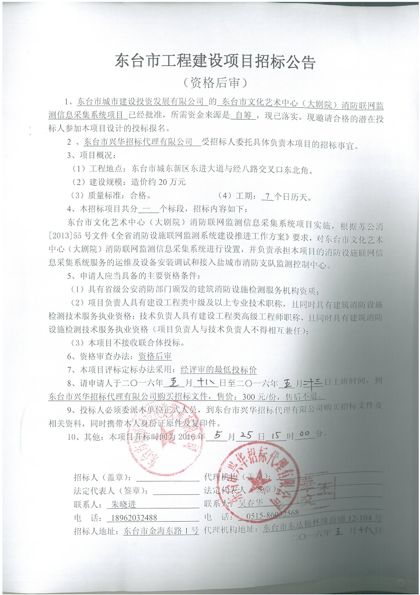 文章来源:东台市兴华招标代理有限公司 添加时间:2016/5/18 11:46:15 点击率:1965