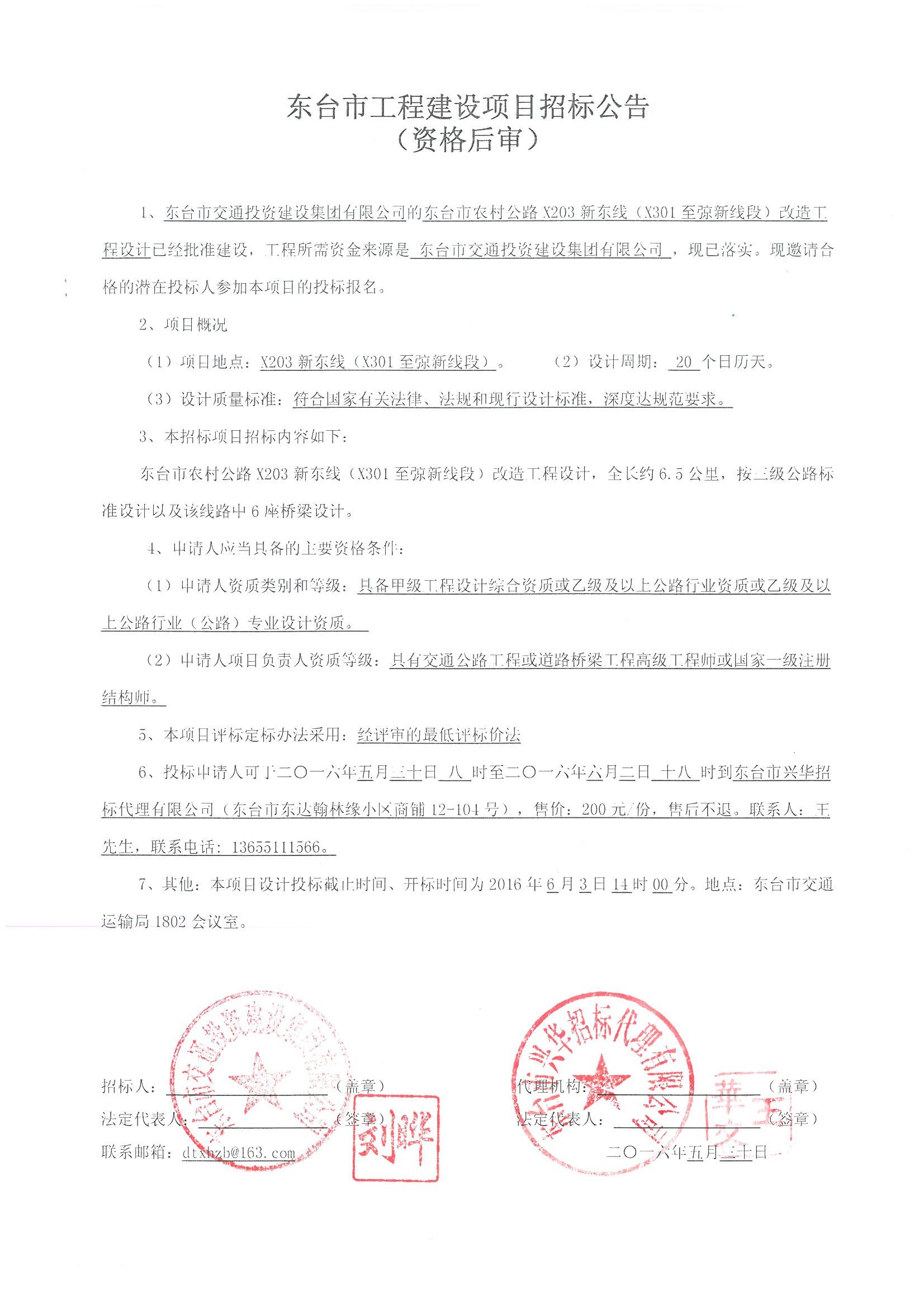 东台市农村公路X203新东线(X301至弶新线段)改造工程设计招标公告