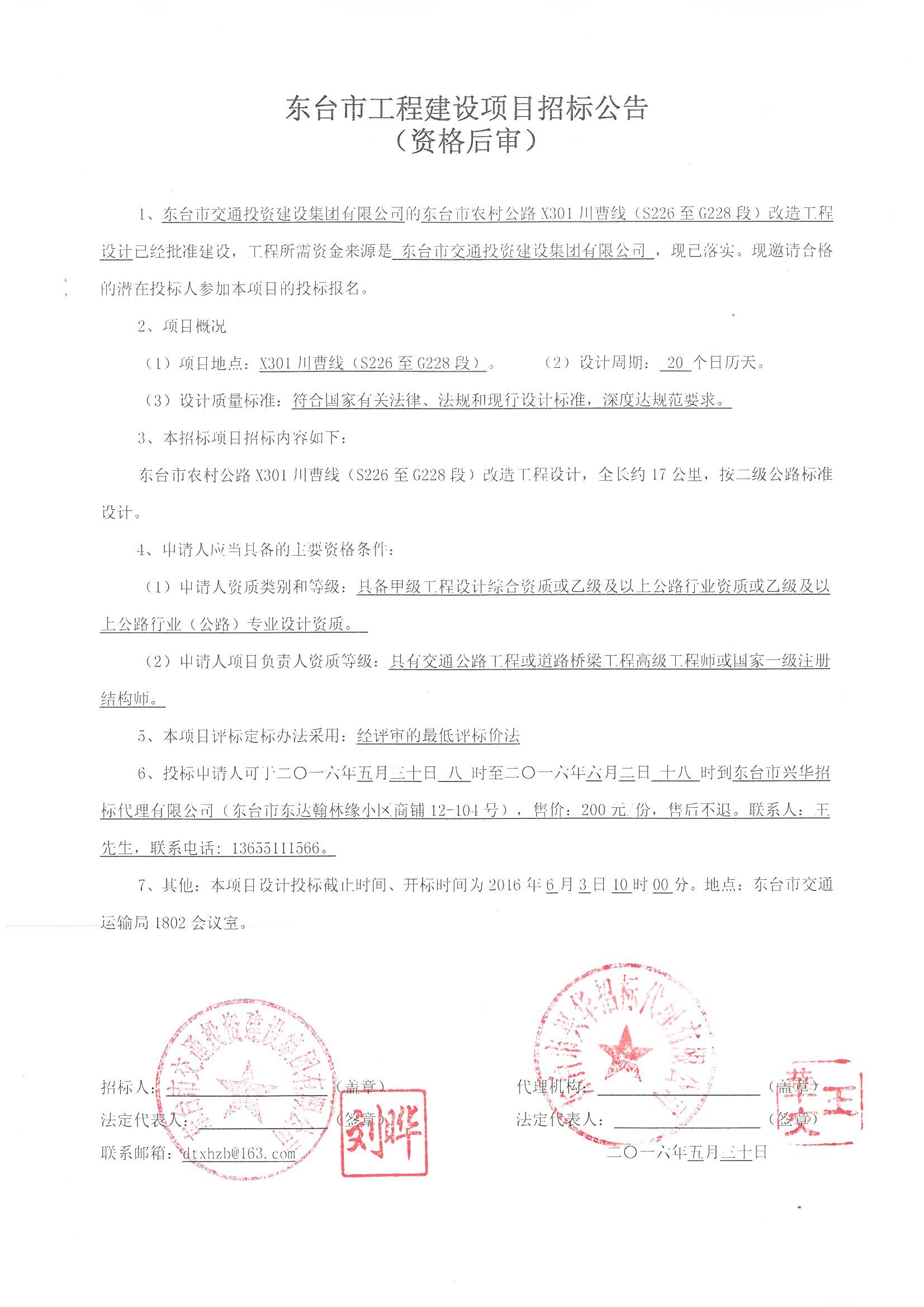 东台市农村公路X301川曹线(S226至G228段)改造工程设计招标公告
